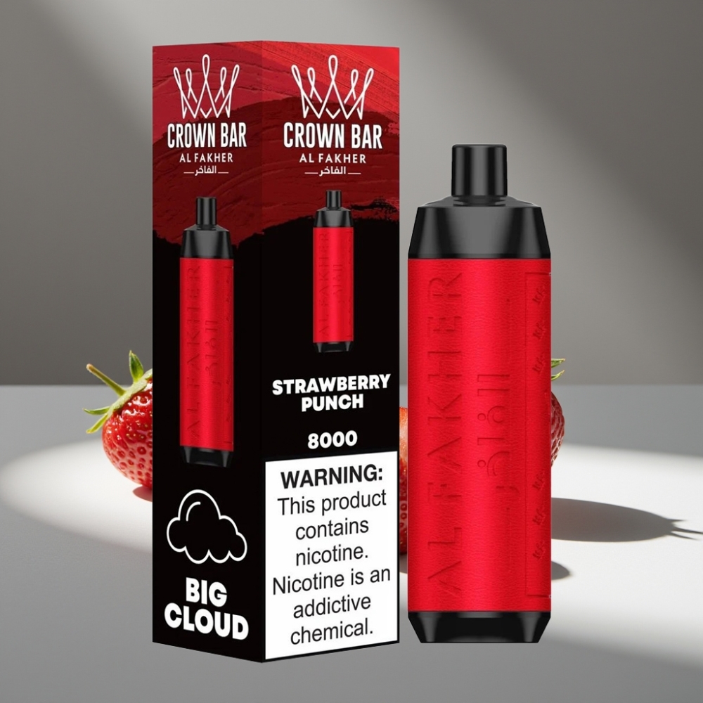 Al Fakher Crown Bar 8000 بلوري ستوربيري بانش 18مل 5ملغ نيكوتين 600ميلي أمبير