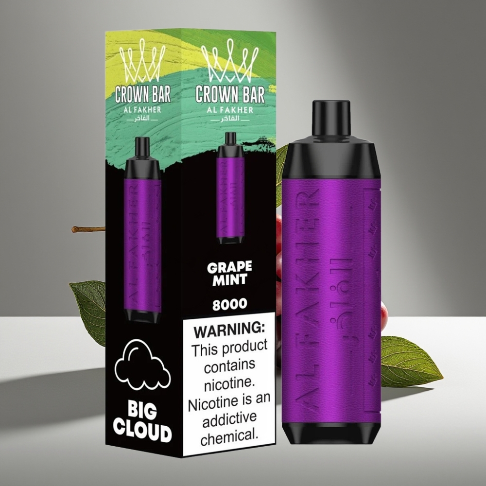 Al Fakher Crown Bar 8000 كريستال عصير عنب بالنعناع، 18مل، 5ملغ نيكوتين، شحن USB-C