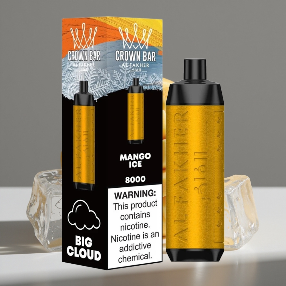 Al Fakher Crown Bar 8000 Crystal مانجو آيس - 18مل، 8000 نفخة، 5ملغ نيكوتين